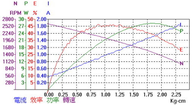 | 電壓 | 電流 | 轉速 | 轉矩 | 入力 | 出力 | 效率 | |
